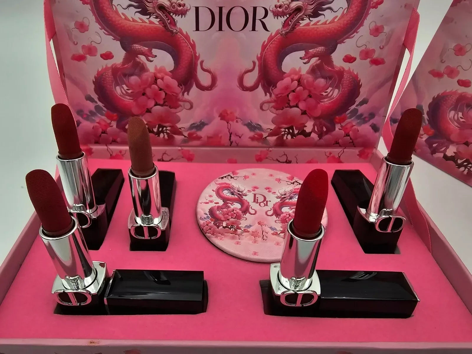 Five 1.5g lipstick's come's complete with a lovely Dior convex mirror and a matching Giftbag perfect for gifting on any occasions.